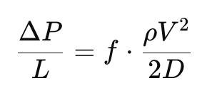 Friction is estimated using the Darcy–Weisbach equation: