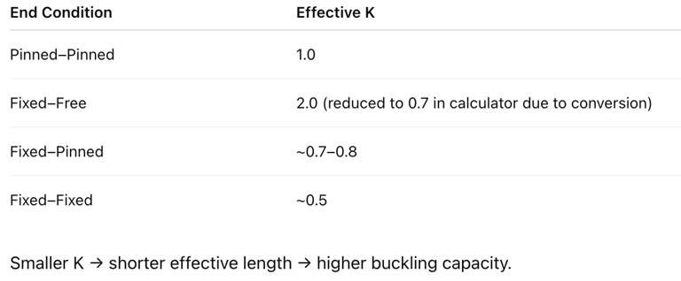 This allows engineers to size compression members quickly, screen preliminary designs, and check slenderness-controlled failures.