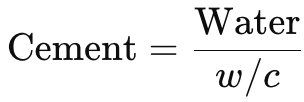 Once water is estimated, cement weight is computed using the selected water–cement ratio.