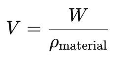 Each material’s volume is calculated using its specific gravity: