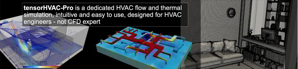 As you explore these HVAC calculators to size cooling loads, ducts, pumps, and airflow requirements, you may find that real-world HVAC systems often involve complex air movement, room pressurization, thermal comfort patterns, and equipment interactions that go far beyond what manual formulas can capture. This is where tensorHVAC-Pro comes in—a dedicated HVAC flow and thermal simulation software built specifically for HVAC engineers, not CFD experts. tensorHVAC-Pro lets you visualize airflow, temperature distribution, ventilation performance, and system efficiency through an intuitive interface, enabling accurate design decisions without needing deep CFD knowledge.