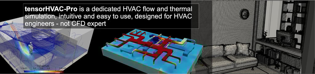 While this calculator gives an accurate approximation of friction losses in a straight duct, real HVAC systems involve elbows, transitions, branches, diffusers, leakage, thermal effects, and complex airflow interactions that simple formulas cannot capture. To analyze the full airflow behavior across entire duct networks and visualize temperature, pressure, and velocity distributions, tensorHVAC-Pro provides a dedicated HVAC-focused flow and thermal simulation environment. Unlike general CFD software, tensorHVAC-Pro is built specifically for HVAC engineers—delivering automated workflows, HVAC-ready templates, and intuitive tools that allow you to simulate complete systems without needing CFD expertise.