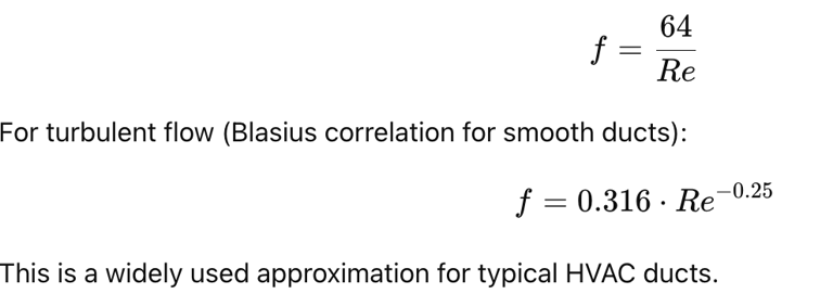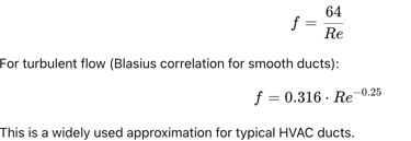 This provides HVAC engineers a quick, practical estimate for preliminary duct and fan selection.
