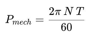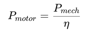 The motor input power must be higher than the mechanical power due to losses, represented by efficiency: