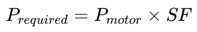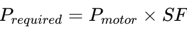 This final value determines the minimum motor rating needed. Motor size is commonly expressed in kW or horsepower (HP)