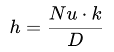 Using the relation h=Nu⋅k/D to compute the heat transfer coefficient