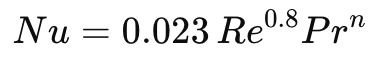For turbulent forced convection inside smooth tubes, the Dittus–Boelter correlation is widely used: