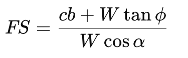 The simplified Bishop equation evaluates resisting vs driving forces: