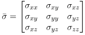 A stress tensor is a mathematical representation of the internal forces within a material. It captures the intensity and direction of stress acting on different planes within a solid object. For a 3D object, the stress tensor is typically represented as a 3×3 matrix with normal stresses (σxx, σyy, σzz) along the diagonal and shear stresses (τxy, τxz, τyz) on the off-diagonals.