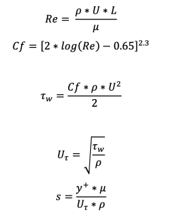 The y+ value is often too complicated to exactly calculate due to the complex mathematical definition of friction velocity, on the other hand, in daily CFD simulation, we just have to estimate the coarse value of it as an initial guess then we can refine it; hence, we will use simple estimation from flat-plate boundary layer approximation: